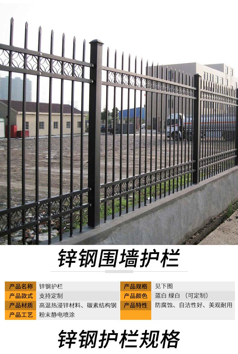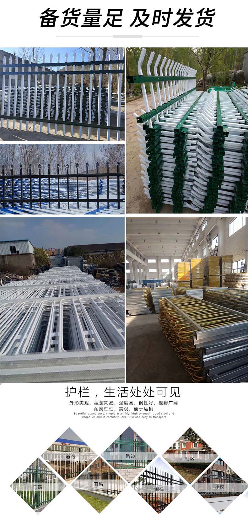 鋅鋼護欄主要用于場區(qū)隔離帶,市政工程隔離帶,園林護欄。市政建設(shè)中的公園、草坪、動物園、池湖、道路、及住宅區(qū)的隔離與防護;賓館、酒店、超市、娛樂場所的防護與裝飾。
