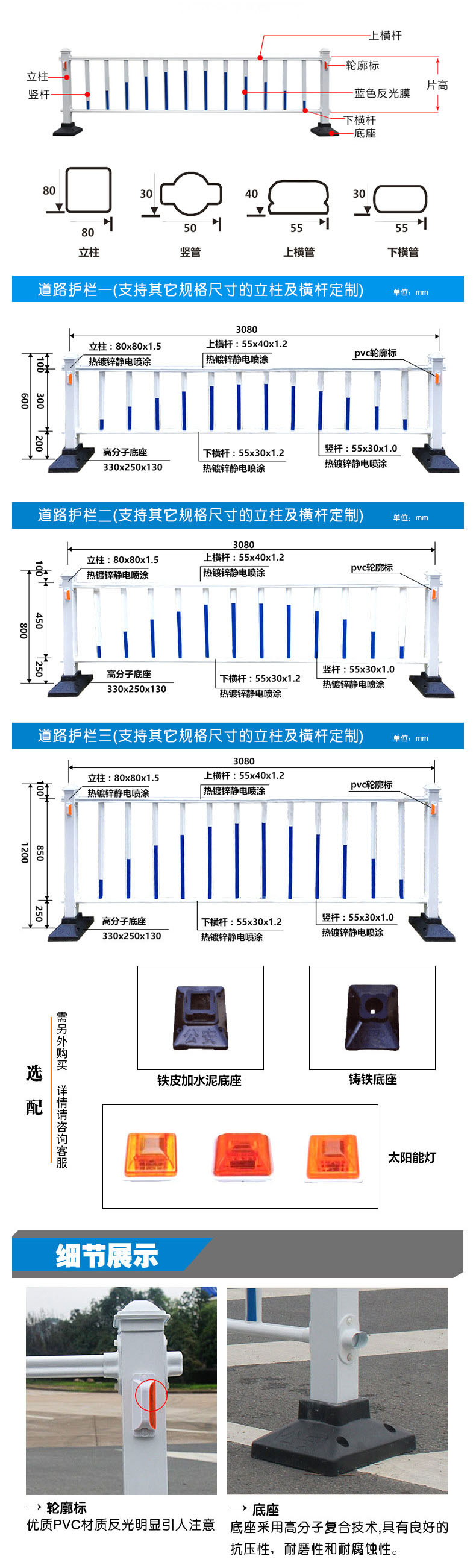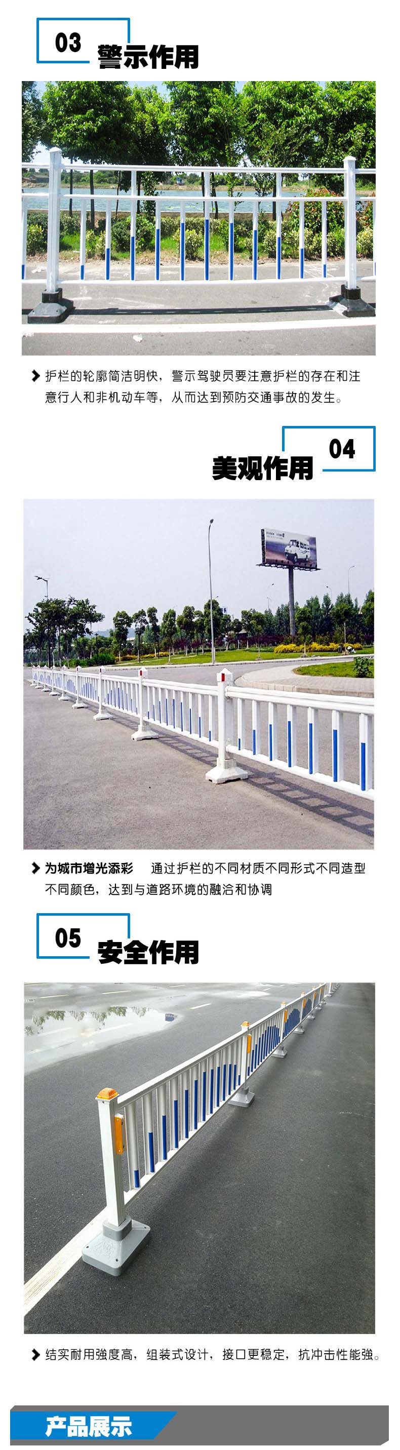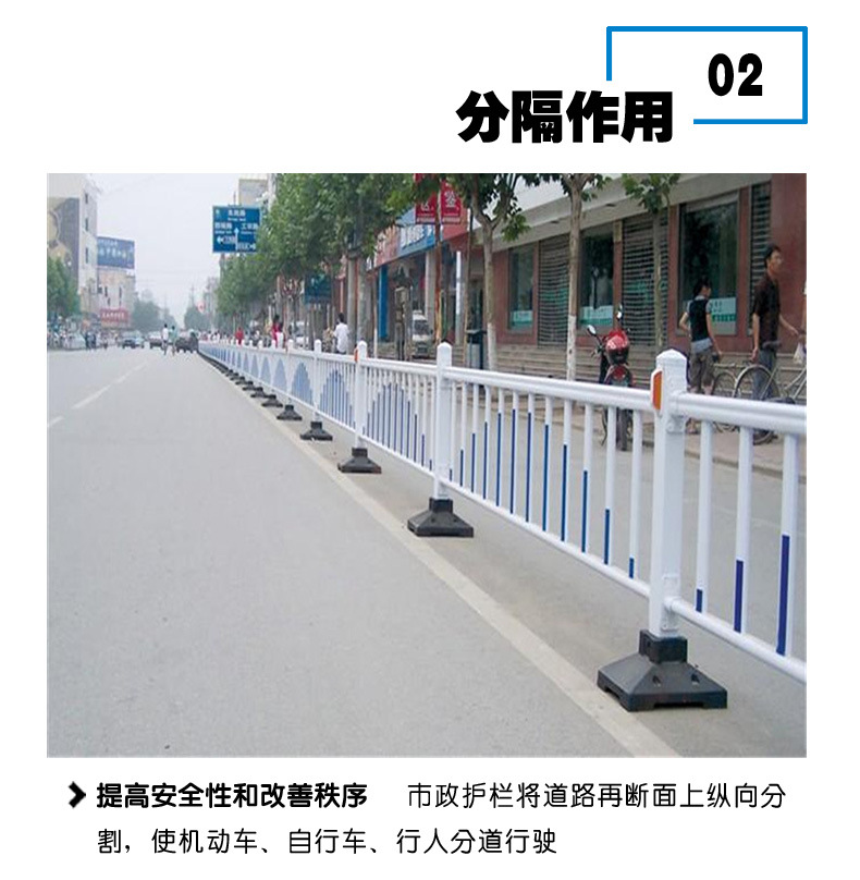 市政護(hù)欄廣泛使用于市政工程,道路,工廠,園林廣場(chǎng)等場(chǎng)所的安全防護(hù)及裝飾美化;還可用于小區(qū)、庭院、別墅,其線條流暢、簡(jiǎn)潔美觀、富有濃郁的現(xiàn)代氣息,讓小區(qū)生色,讓庭院生輝,讓別墅具有時(shí)代的高品位。其產(chǎn)品造型美觀,而且牢固,防腐性好,安裝簡(jiǎn)單、維修方便、容易清洗、經(jīng)濟(jì)實(shí)用,免除維修,結(jié)構(gòu)美觀,與環(huán)境協(xié)調(diào)性好。是美化城市環(huán)境工程的首選產(chǎn)品!