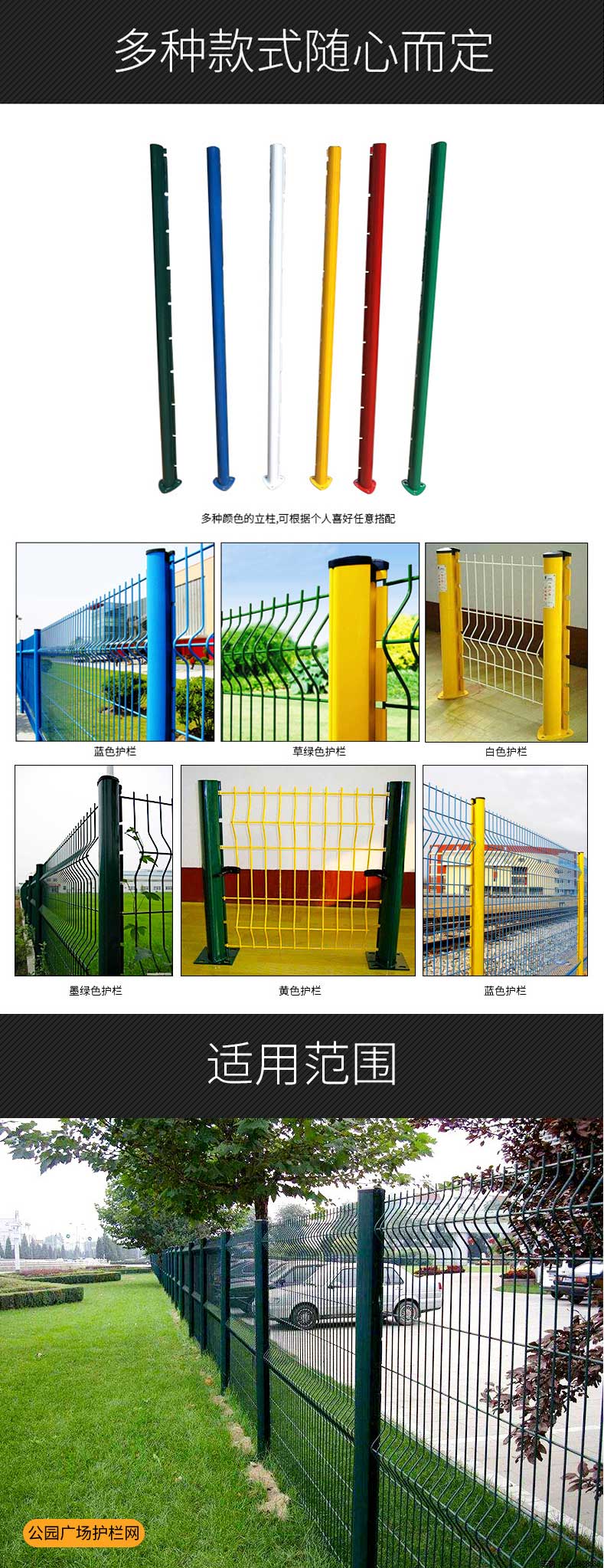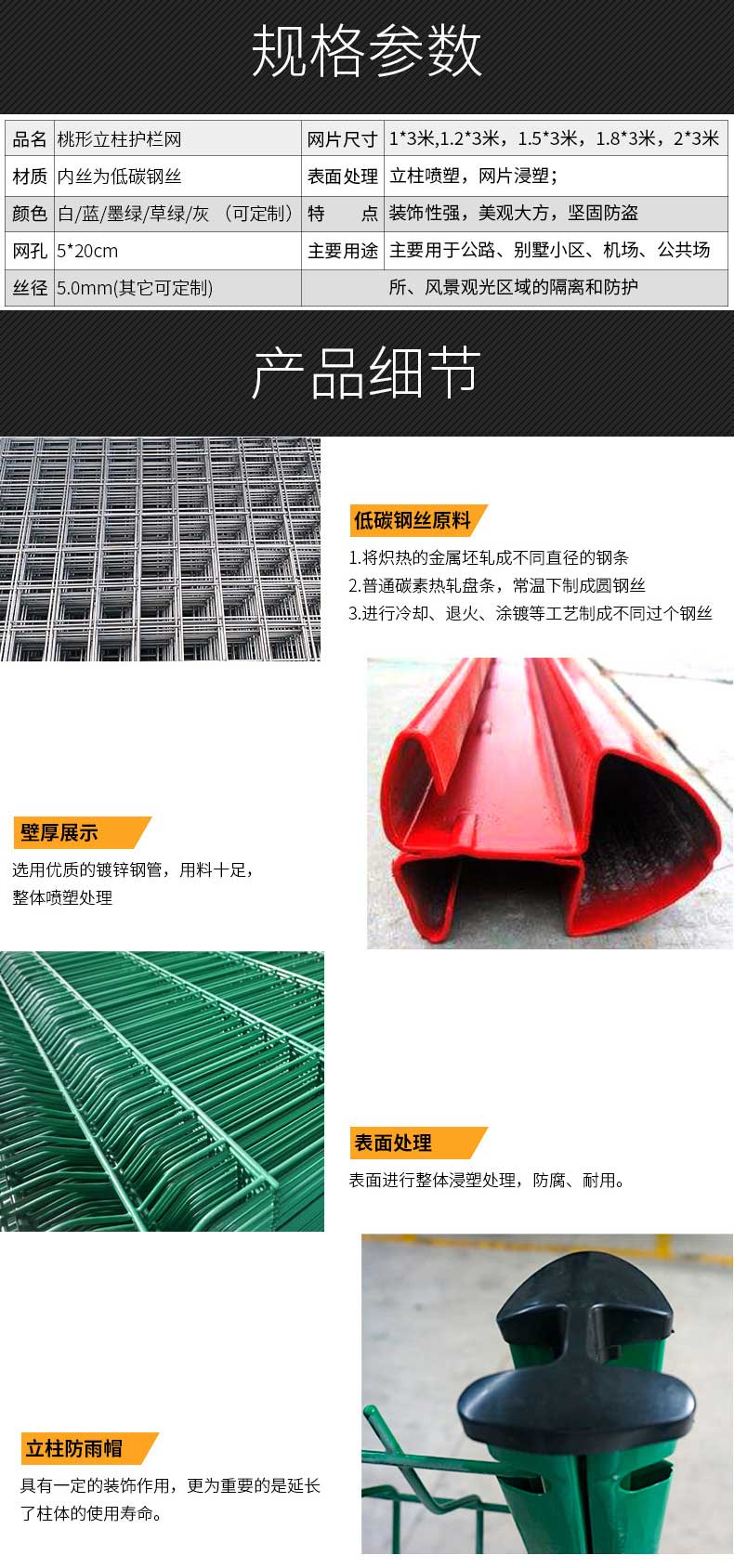 隔離護欄網(wǎng),雙邊絲桃形立柱護欄網(wǎng),低碳鋼絲立柱噴塑網(wǎng)片浸塑,顏色可定制, 裝飾性強,美觀大方,堅固防盜;便于運輸,安裝不受地形起伏限制;適用于鐵路公路封閉網(wǎng)、別墅小區(qū)圍欄、市政圍網(wǎng)、機場、公共場所、風景觀光區(qū)域的隔離和防護開發(fā)區(qū)的美化等。