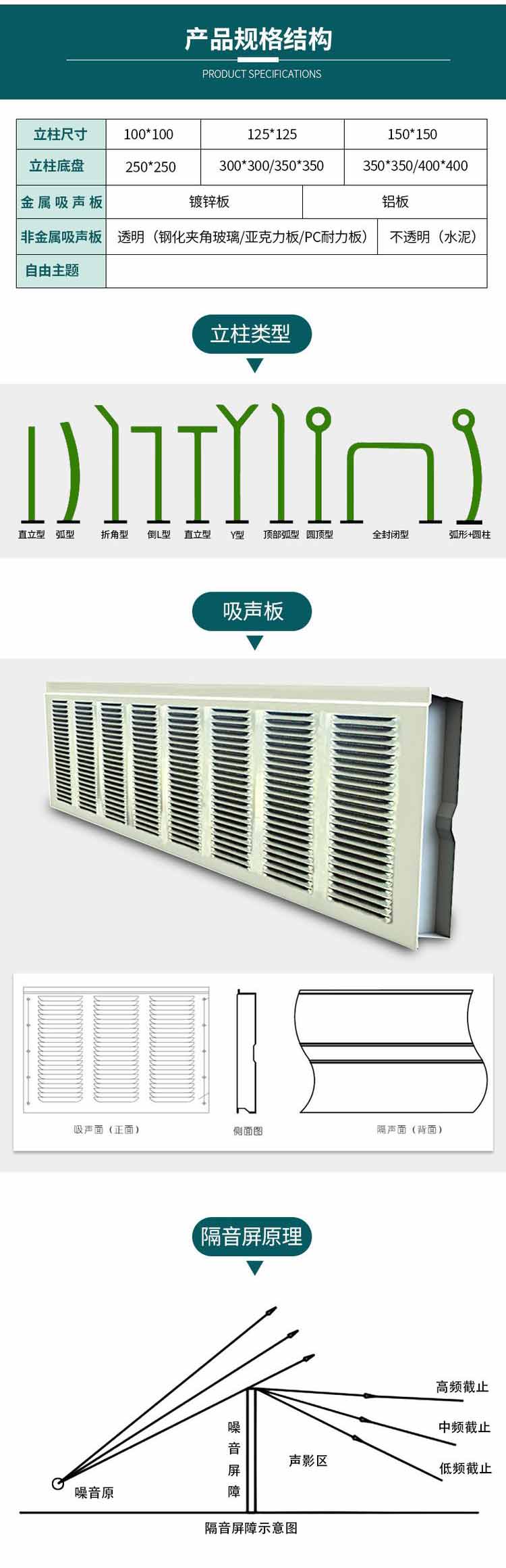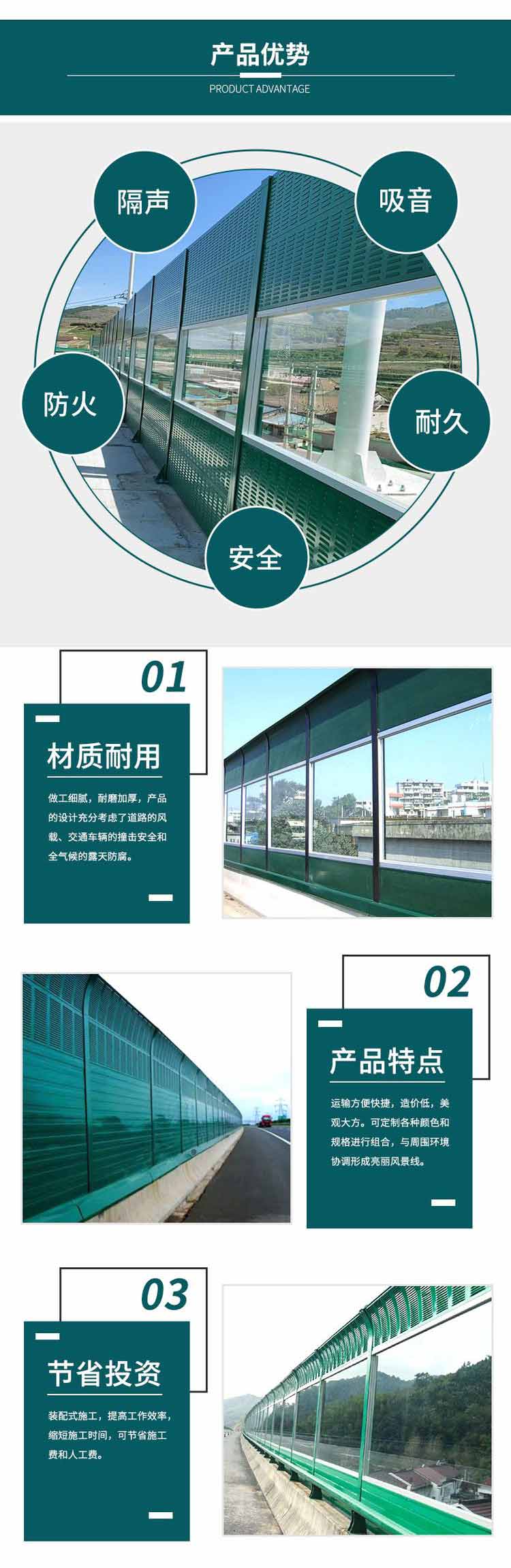 聲屏障主要用于高速公路、高架復(fù)合道路、城市輕軌地鐵等交通市政設(shè)施中的隔聲降噪、控制交通噪聲對附近城市區(qū)域的影響,也可用于工廠和其它噪聲源的隔聲降噪。聲屏障分為純隔聲的反射型聲屏障,和吸聲與隔聲相結(jié)合的復(fù)合型聲屏障,后者是更為有效的隔聲做出來的。