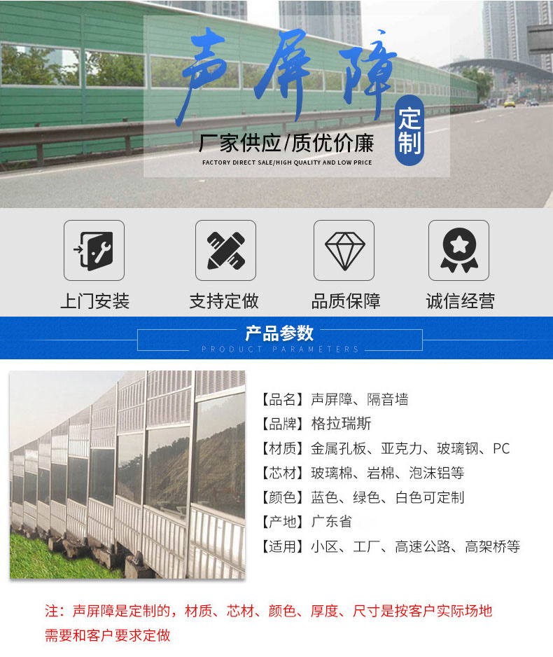 聲屏障主要用于高速公路、高架復(fù)合道路、城市輕軌地鐵等交通市政設(shè)施中的隔聲降噪、控制交通噪聲對(duì)附近城市區(qū)域的影響,也可用于工廠和其它噪聲源的隔聲降噪。